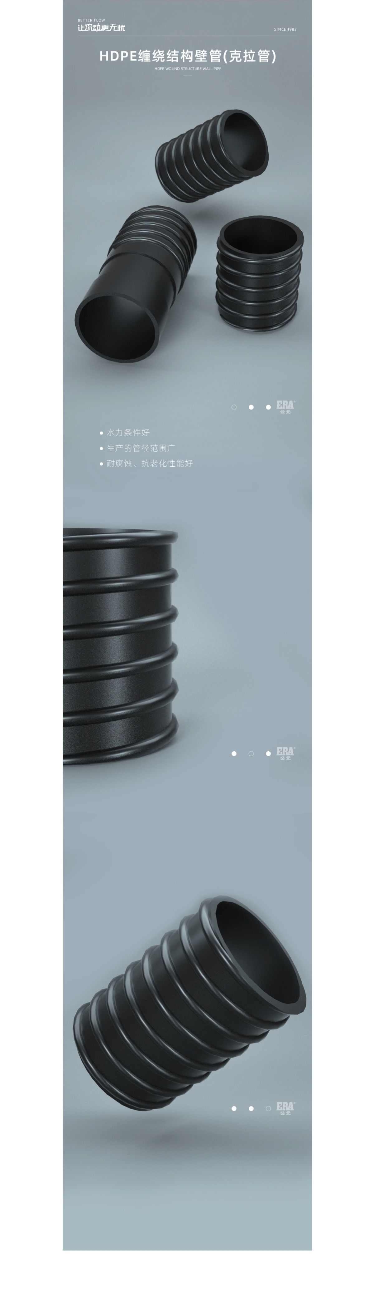 是(shì)一種內壁光滑、外壁為螺旋狀(zhuàng)加強肋,由底(dǐ)膜和肋界(jiè)麵為O型的肋管經螺旋纏繞工藝製成的異形結構壁柔性管材,采用高密度聚(jù)乙烯為原料,在熱熔狀態下通過纏繞工藝一次成(chéng)型,並在熱(rè)態未脫(tuō)模前(qián)通過滾動(dòng)風冷方式冷卻(què),管道逐步(bù)散(sàn)熱,壁厚均勻,無(wú)內應力;管道連接采用承插式電熔連接和節流式承插連接,施工(gōng)便捷且安全零滲漏,在全世界範圍內早已(yǐ)得到廣泛應用,在中國被建設部評為重點推廣產(chǎn)品,是國家推廣城市雨汙水係統“以塑代鋼、以塑(sù)代水泥”的新型優質管材產品。經過不斷研發創新,該產品抗震設防烈度達9級,適用於不均勻沉降地(dì)質區域及地震帶區域。管道執行標準:GB/T19472.2埋地用聚乙烯(PE)結構壁管道係(xì)統第(dì)二部分聚(jù)乙烯纏繞結(jié)構壁(bì)科(kē)管材。
