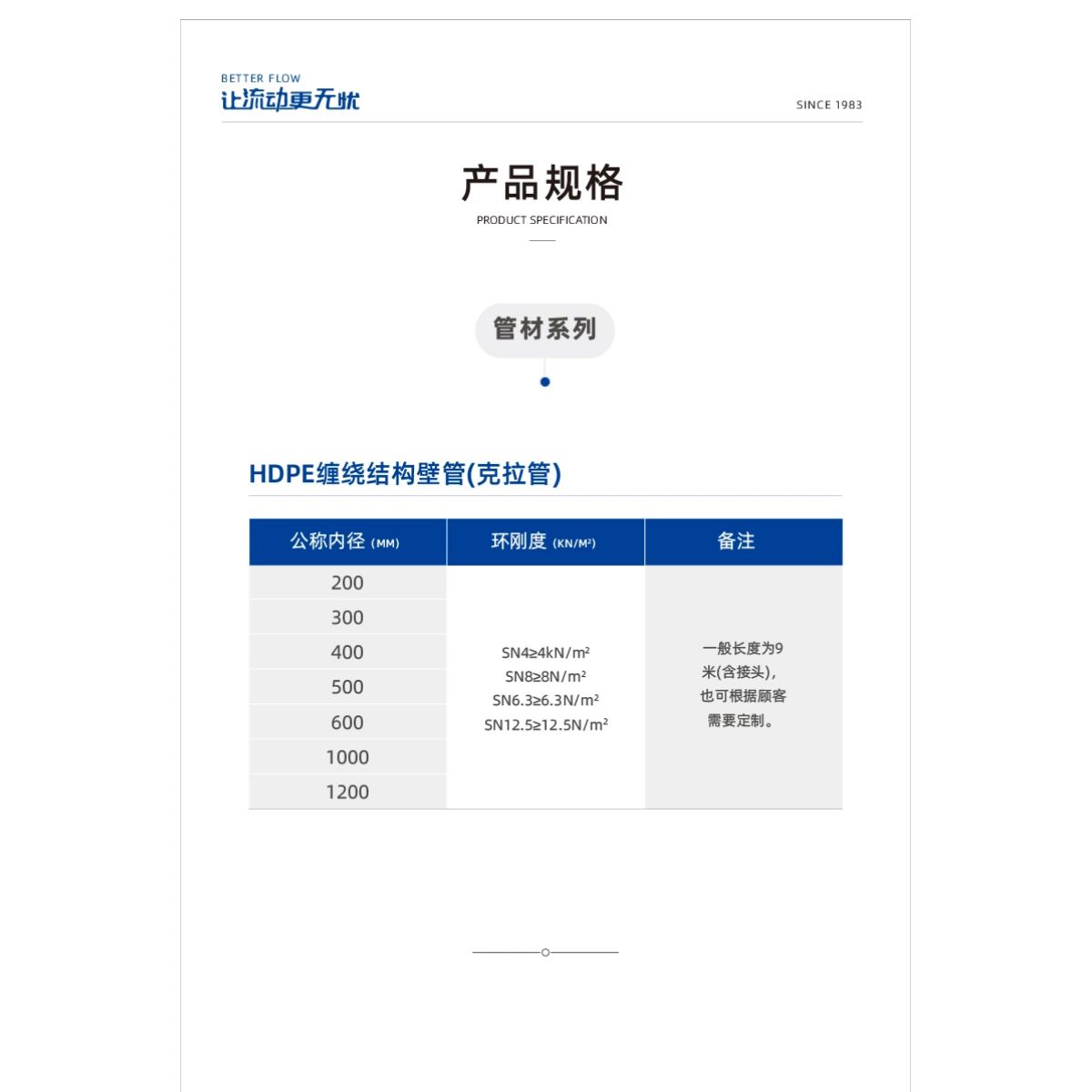 管道執行(háng)標準∶GB/T19472.2埋地用聚乙烯(PE)結構壁管道係統第(dì)2部分(fèn)聚乙(yǐ)烯纏繞結構壁管材;