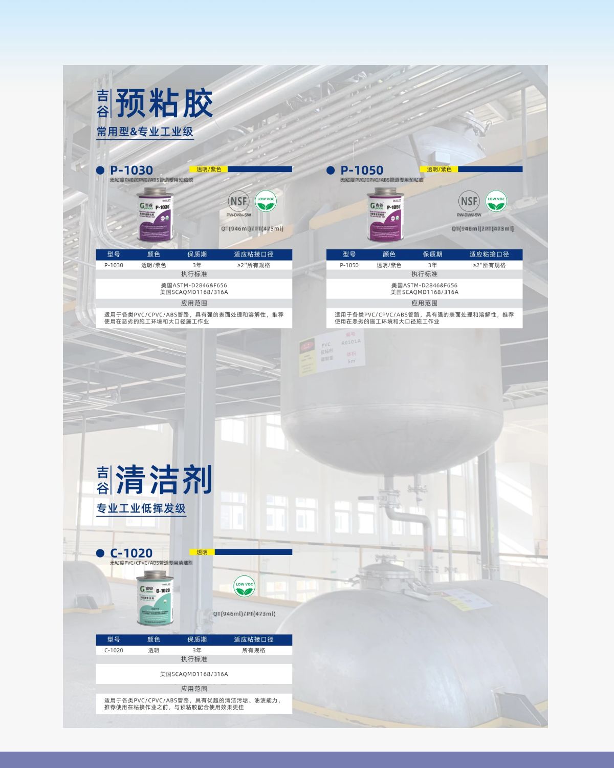 預粘(zhān)膠有良好的清潔軟化粘接表(biǎo)麵,使得膠水更容易滲透粘(zhān)接表麵,達到粘接最大強度。低揮發低(dī)揮發LovVOC環保級。應用在民用或工業PVC/CPVC/ABS管道粘(zhān)接口清潔軟化,施工環境和(hé)天氣苛刻條件時,特別是大口徑裝配,可(kě)降低粘接(jiē)難度。